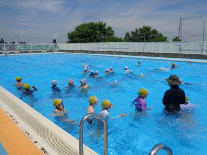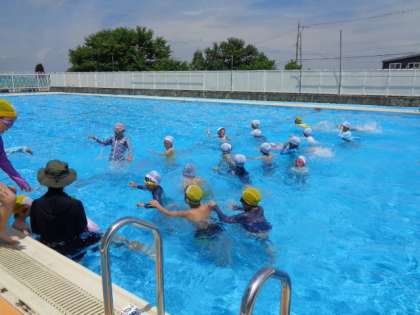三連休明け、今日も暑い一日でした。3限目は水泳学習でした。沢田先生に抱きかかえられて投げてもらい、はしゃぐ楽しそうな子供たちの姿が見られました。