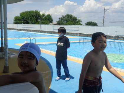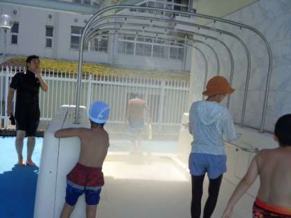楽しい水泳学習の後には、シャワーできれいに身体を流します。今日も気持ちのよいプールでした。