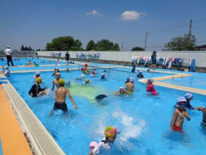 夏休み第1日目、猛暑の中、大勢の児童が学校のプールを利用しました。育成会役員の方にも暑い中、本当にありがとうございました。