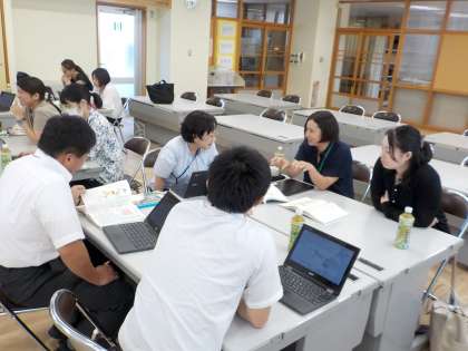 今日は、区域の5年生の先生方が集まって、研修をしました。2学期に学習する内容について、どのようにすると楽しくなるか知恵を出し合いました。
