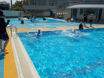 その後、プールで水泳の記録をとりました。夏休みによくプールに通っていた子供たちは、泳力を伸ばした成果が感じていました。