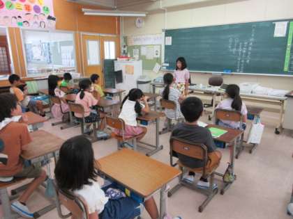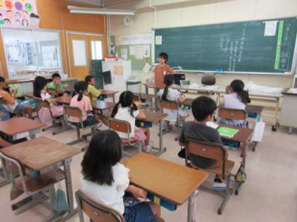 夏休みが明けて、元気いっぱい登校しました。今日は、夏休みにあったことをみんなの前で発表しました。