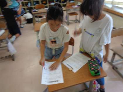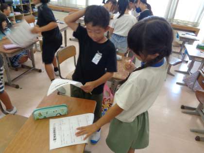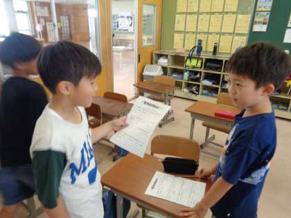 夏休み中の出来事をもとにした、ビンゴゲームを行いました。友達に夏休み中どんなことをしたのか聞きながら、楽しそうに活動していました。