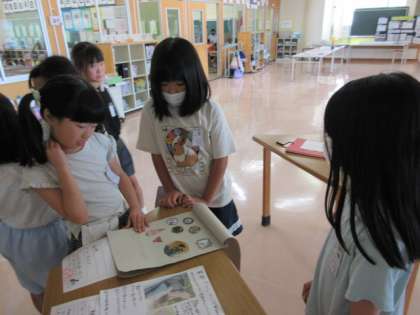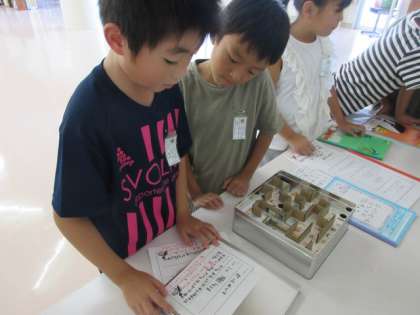 「どうやって作ったの?」「紙飛行機をたくさん作ってすごいね。」など話しながら作品を見ていました。