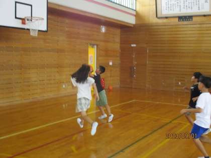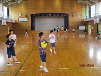 リフレッシュタイムにドッジボールやバスケットボールなどをして楽しんでいました。
