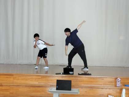 リズムダンスの中間発表をしました。