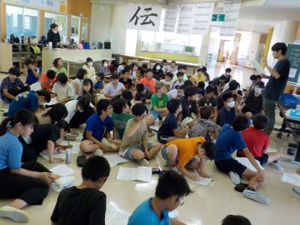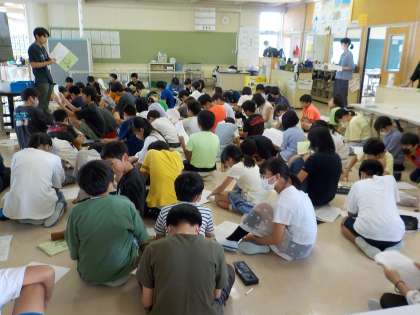 宿泊学習のしおりが配付され、持ち物や日程、役割の確認をしました。5、6年で協力して、実りのある宿泊学習になることを願っています。