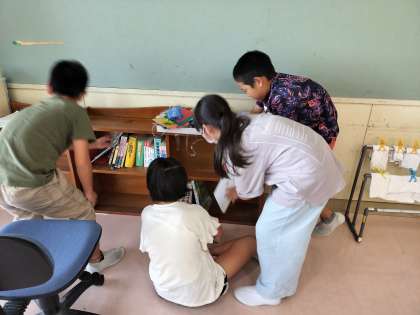 ワークの本棚が散らかっていることを伝えると、進んで片付けてくれた子たちがいました。