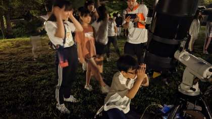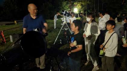 雲の間から土星やデネブなどの星が見えます。望遠鏡でよく見えています。