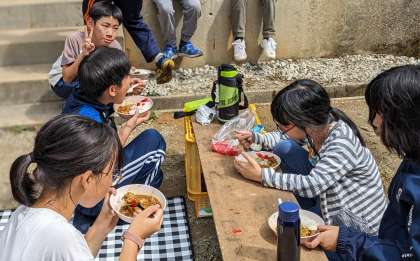 おかわりを何回もしてもりもり食べていました。自分たちで作ったカレーは格別の味でした。