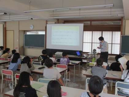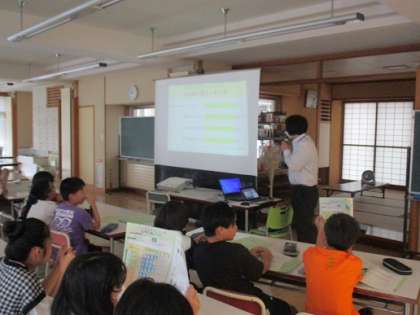講師の方に来ていただき、地球温暖化について詳しく教えていただきました。夏休みに自分たちが行ったエコ活動の結果を知り、よりいっそうエコに対して関心を深めました。