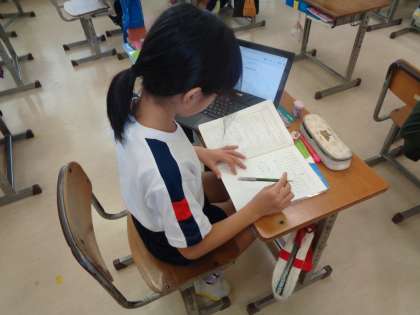 社会では、米づくりについて主体的に学習を進めてきました。今日は、様々な問題を抱えている米づくりを、これからも守っていくためにはどうすればいいかについて、自分なりに考えました。米づくりに関わる人々の新しい取組を知ったり、自分がどうしていくか考えたりして、自分の考えをもつことができました。次は、お互いにききあって、さらに考えていきましょう。