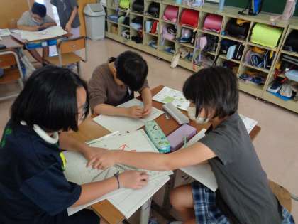 先週の金曜日に、太陽の向きとかげの向きについて調べる観察実験をしました。そのときの結果から、太陽はかげと反対側にあることや、思っていたよりも太陽が動いていたことなど、「分かったこと」をたくさん見付けることができました。