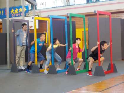劇が終わったあと、教室へ向かう道では、多くの子供たちがポケットに手を突っ込み、がに股で歩く「ギャング」になりきっていました。