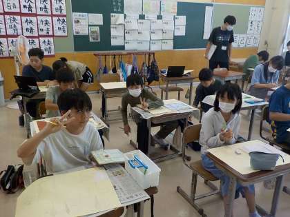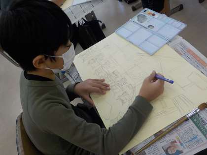 6年生は図工科の学習で、思い出に残る校舎の様子を絵画作品に表現しています。子供たちは、1本1本の線をよく観察して描いていました。立体的な表現力も伸びているなと感心しました。