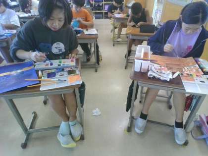 図工では「まだ見ぬ世界」、家庭科では「ティッシュケースづくり」に取り組んでいます。どちらもラストスパート!!仕上げの作業です。