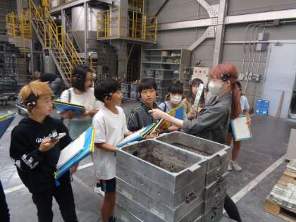 今日は、5年2組の校外学習でした。まずは、高岡の能作に行きました。入るとすぐにいろんな型が飾られていて、「これはなんだろう」「何に使うのかな」と興味津々でした。係の方の案内で2グループに分かれて、見学をしたり体験をしたりしました。見たことのないものづくりの様子や、初めての鋳物づくり体験など、楽しんで意欲的に取り組むことができました。