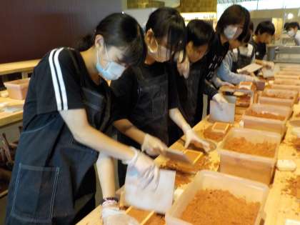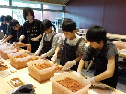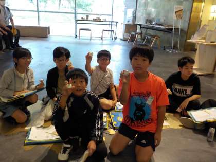 別のグループの作業の様子です。作品が完成して嬉しそうです。