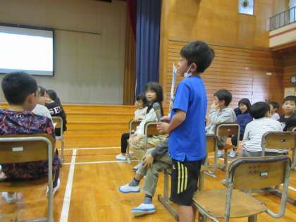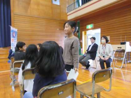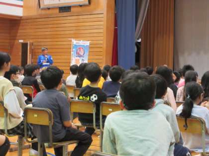 カターレの大野選手から夢に向けてのお話を聞きました。現役の選手の話を直接聞くことができる貴重な機会に、みんな朝からワクワクしていました。質問も上手に話すことができました。