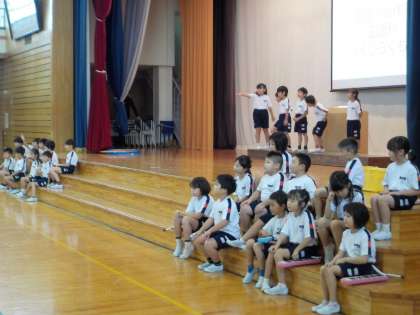 おうちの方がたくさん見ておられる中で、ずいぶん緊張したと思いますが、子供たちは練習のときと同じくらい、のびのびと、元気よく演技をすることができました。