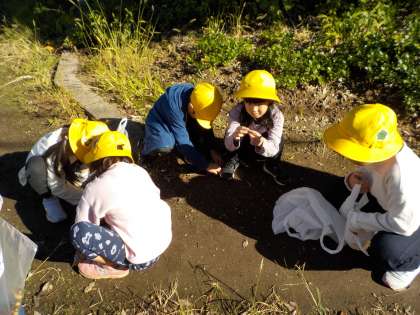 稲荷公園では、どんぐりや落ち葉をどっさり拾ったり、広場でたっぷりと遊んだりしました。