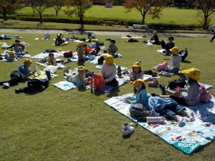 青空の下で食べると、おやつもいつもよりもおいしく感じられました。