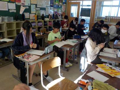 今日は、ハロウィンだったので、外国語でもハロウィンビンゴをしていました。ハロウィンのキャラクター名を英語で練習したあと、ビンゴシートにキャラクターを並べて貼ります。これで準備完了です。ビンゴできたかな。
