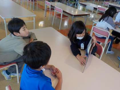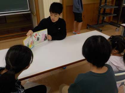 少人数で本の読み聞かせを聴き合うことで、相手を意識した活動ができました。