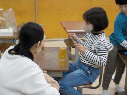 連休中におうちの方と公園へ行って、どんぐりや落ち葉を拾ってきたという話も聞きました。ご協力ありがとうございます。