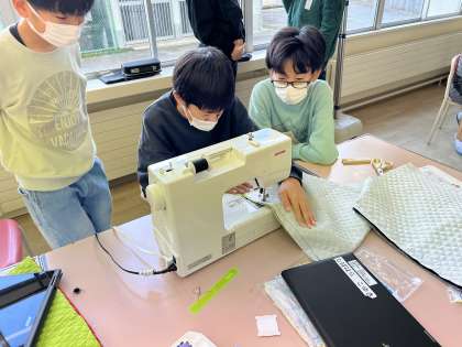 5年生で習ったミシンの使い方を思い出しながら、動画や説明書を見て、がんばって作っています。