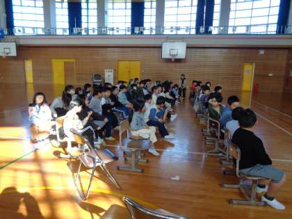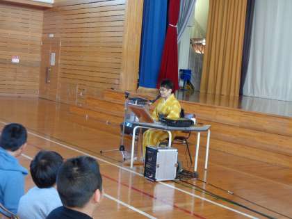 今日は、鈴木先生の朗読会がありました。「くじらぐも」や「スイミー」などの国語で学習した話や、「おおきなかぶ」を富山弁で聴いたりするなど、登場人物によって声色が変わることに子供たちは驚きながらも楽しむ様子が見られました。
