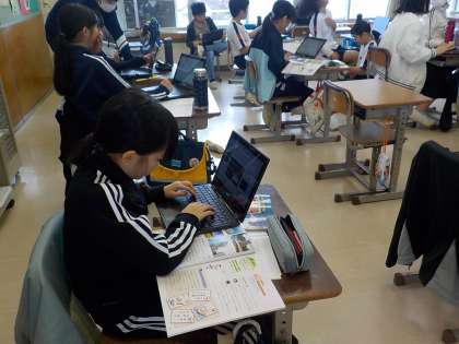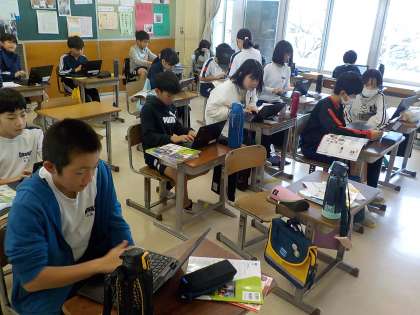 5年生は社会科で日本の貿易の特色について学習しています。今日は調べて分かったことをスライド等にまとめました。