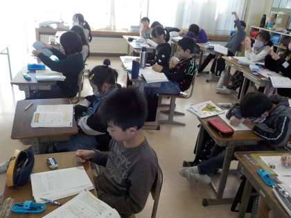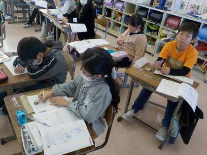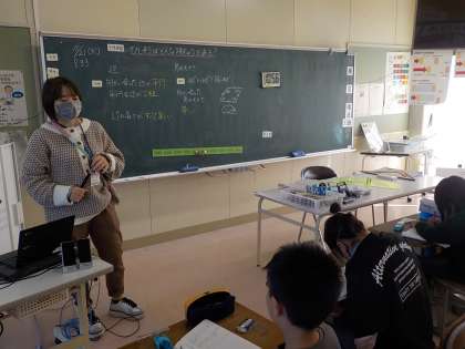 4年生は算数科で、平行四辺形の性質について考えました。向かい合った辺の長さや角の大きさに注目して性質を捉えようとしていました。