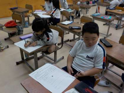 ペアになった友達に「今、一番楽しいこと」についてインタビューしました。