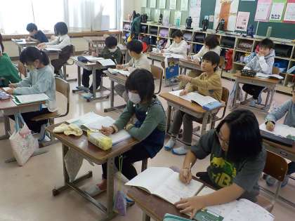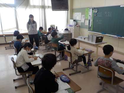 3年生は算数科で、3つのコースに分かれて少人数で学習しました。小数のたし算等に取り組みました。