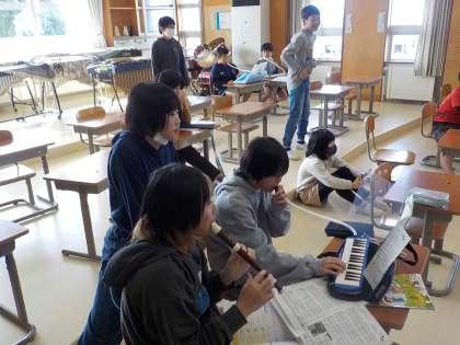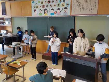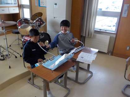 5年生は音楽科で、「キリマンジャロ」の器楽合奏に取り組みました。繰り返される旋律を鍵盤ハーモニカのパートをリードして、迫力のある演奏ができました。