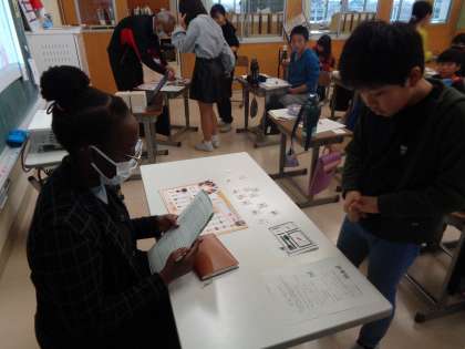 英語では、スピーキングテストがありました。先生方と英語で会話しました。練習の成果が出ていて、正しく自信をもって英語で会話できる人が多くいたようです。1学期と比べると成長した姿がみられ、これからの上達も楽しみです。