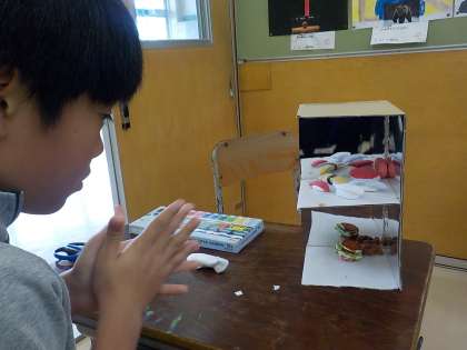 5年生は図工科で「ミラクルミラーランド」の制作をしています。完成した作品を端末に保存し、友達からコメントを付けてもらうようにしていました。