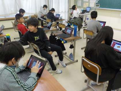 6年生は学級活動で、集会係が企画した活動に取り組みました。端末上に課題が出され、それをクリアするために楽しみながら取り組んでいました。