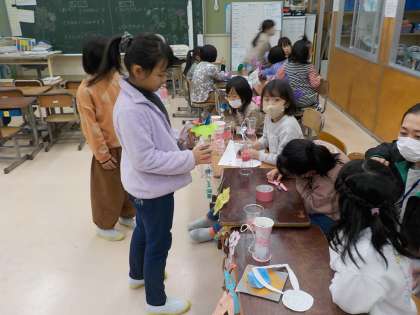 1年生は生活科で、自分たちが準備した「秋祭り」に2年生を招待して一緒に楽しみました。楽しい遊び場が用意されていました。