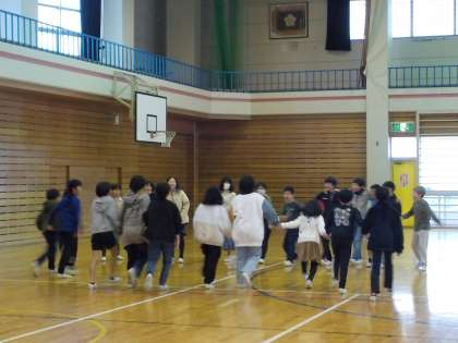 集会係が企画してくれた集会を楽しみました。ビンゴドッジやに始まり花いちもんめをしたりダルマさんが転んだをしたり。季節がすっかり冬になり体育館も冷えていましたが、元気に体を動かして楽しみました。