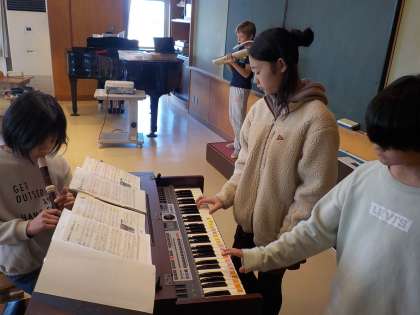 5年生は音楽科で、合奏曲「キリマンジャロ」の仕上げの演奏を行いました。迫力のある合奏になりました。