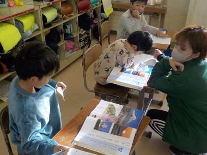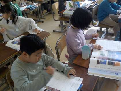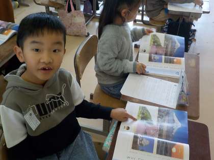 2年生は道徳科で、日本の風景の写真から「美しいもの」について考えました。どの写真のどのようなところに心を動かしたかを紹介しました。