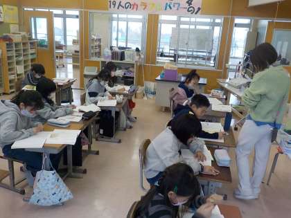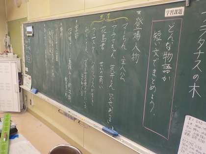 4年生は国語科で、物語文の学習をしました。子供たちは物語の登場人物を読み取ったり、だいたいのあらすじをまとめたりしました。