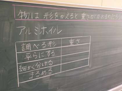 3年生は理科で、ものの重さの学習をしています。今日は、ものの重さは形を変えるとかわるのかについて調べました。