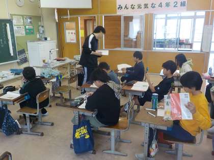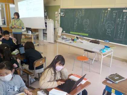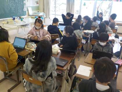 4年生は国語科で、物語文「プラタナスの木」を読み取りました。登場人物の言動から問いを設けて、心情を想像する様子が見受けられました。