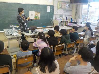 今日は、お話の会の皆さんによる本の読み聞かせがありました。子供たちは想像力を働かせて、お話に聞き入っていました。