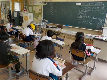 3年生は算数科で、分数の計算や小数のしくみについて学習しました。ノートを丁寧に書く様子がうかがえました。