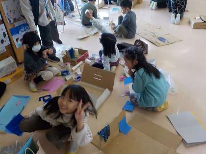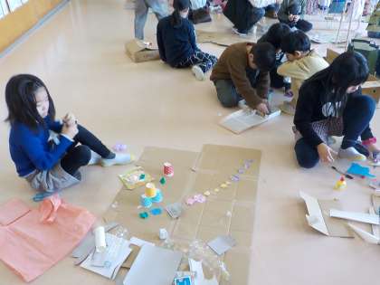 2年生は図工科で、玉がコロコロと転がる迷路の工作に取り組みました。子供たちは面白い迷路になるように、アイデアを生かしていました。