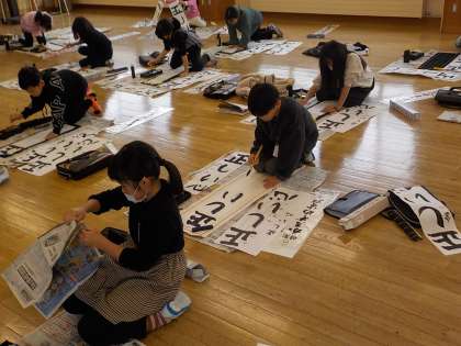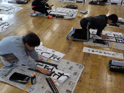 3年生は書き初めの練習を行いました。子供たちは、墨の付け方に気を付けながらお手本をよく見て揮毫していました。